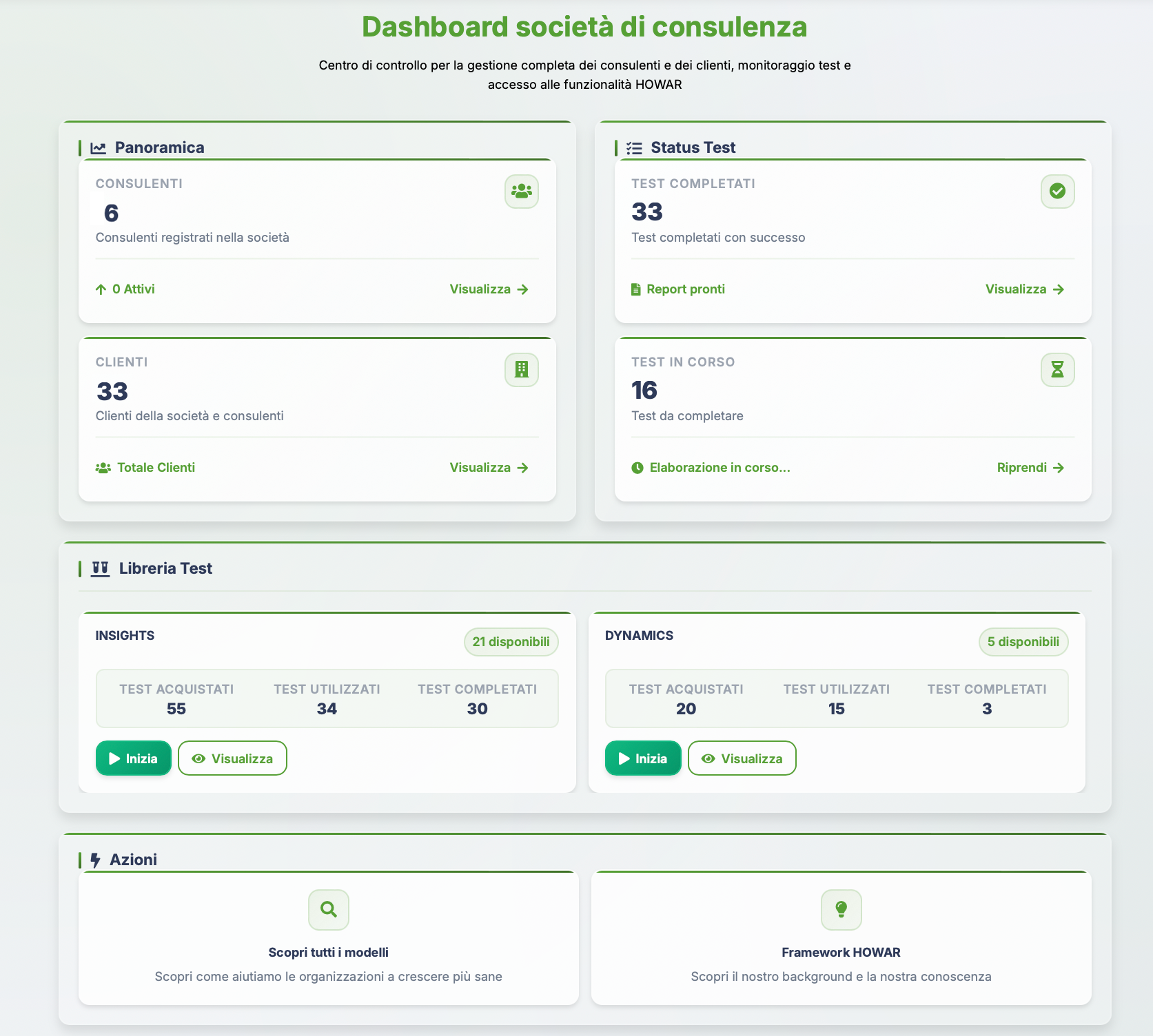 Dashboard professionale, test scientifici e report AI-powered. Per società di consulenza, consulenti e aziende.
