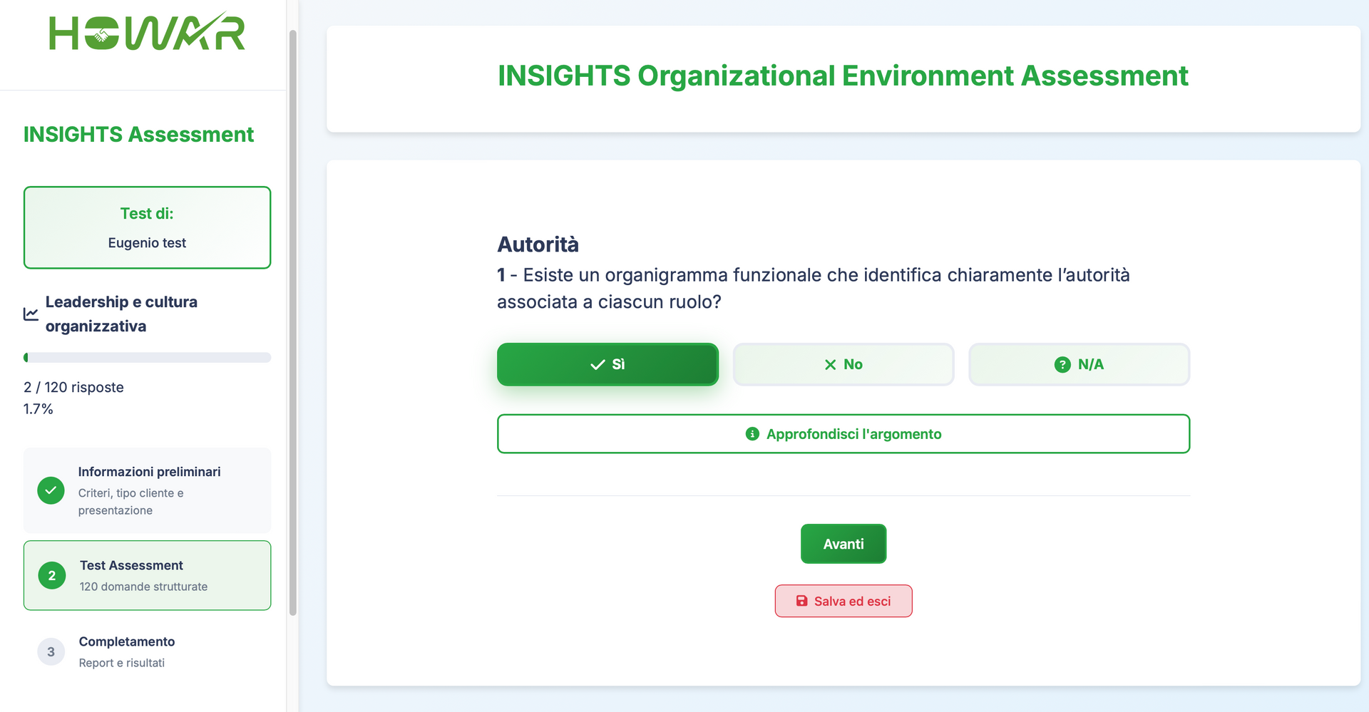 Se hai competenza nelle specifiche aree di analisi del test, abbiamo comunque cercato di rendere sia le domande sia i report generati dalla IA fruibili in modo autonomo. Resta comunque il consiglio di affidarsi a un consulente esperto.